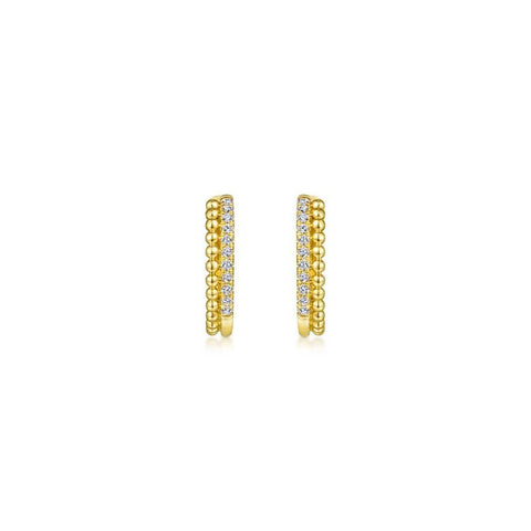 14k Yellow Gold Beaded Pave Diamond Huggie Earrings