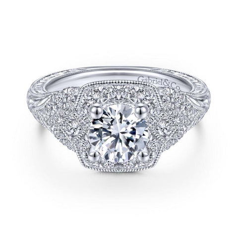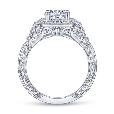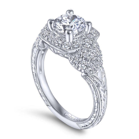 Gabriel & Co. 14k White Gold Victorian Halo Engagement Ring