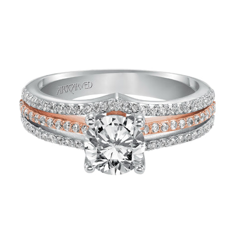 Artcarved Bridal Mounted with CZ Center Classic Diamond Engagement Ring Elizabeth 14K White Gold Primary & 14K Rose Gold